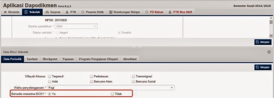 Apabila sekolah telah melakukan sinkronisasi hasil kerja/kondisi terakhir dari Aplikasi Dapodikmen (sinkronisasi dengan Aplikasi Dapodikmen v 8.1.0 /8.1.2 sampai dengan hari Jum’at tanggal 9 Januari 2015 pukul 21:00 WIB) dan setelahnya tidak melakukan entry data lagi, maka lakukan langkah sebagai berikut: